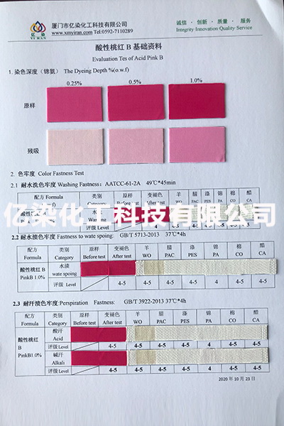 廈門市億染化工科技有限公司是一家集研發(fā)、生產、銷售一體的綜合型企業(yè)。公司主要經(jīng)營:酸性染料、金屬絡合染料、高牢度分散染料及印染助劑。公司信守“以誠信贏合作、以質量贏市場、以創(chuàng)新贏發(fā)展、以服務贏生存”的企業(yè)精神服務于廣大客戶,多年以來建立了良好的市場口碑,市場遍布福建、廣東、浙江、江蘇、山東及東南亞國家,與多家知名企業(yè)建立了長期合作伙伴關系!
